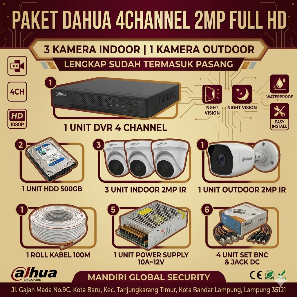 INFORMASI DETAIL PAKET CCTV 4CH DAHUA 2MP