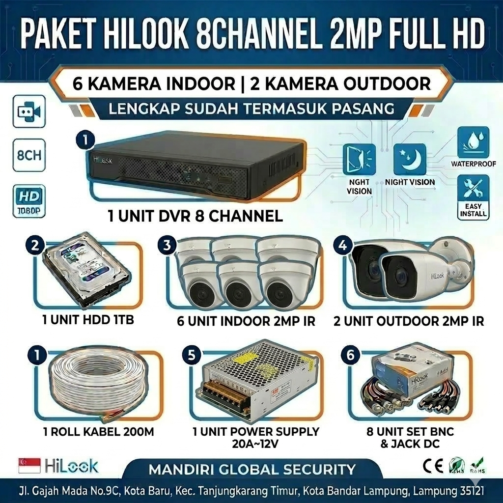 INFORMASI DETAIL PAKET CCTV 8CH HILOOK 2MP